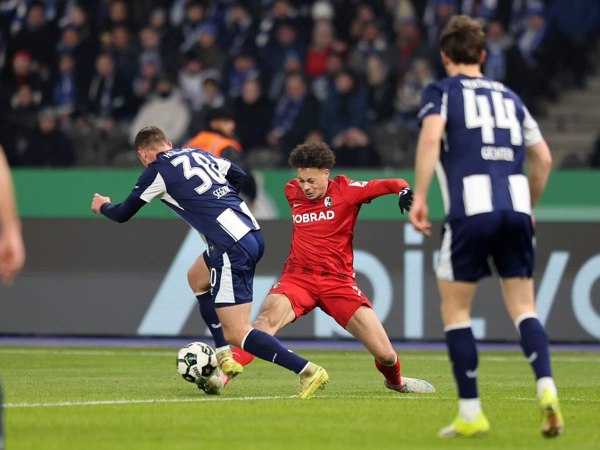 Nach der Verlängerung hatte es 1:1 (0:0, 1:1) gestanden. Den entscheidenden Elfmeter von Hertha-Eigengewächs Klemens parierte Freiburgs Keeper Florian Müller. Um den letzten Platz in der Vorschlussrunde spielen Bayern München und RB Leipzig.