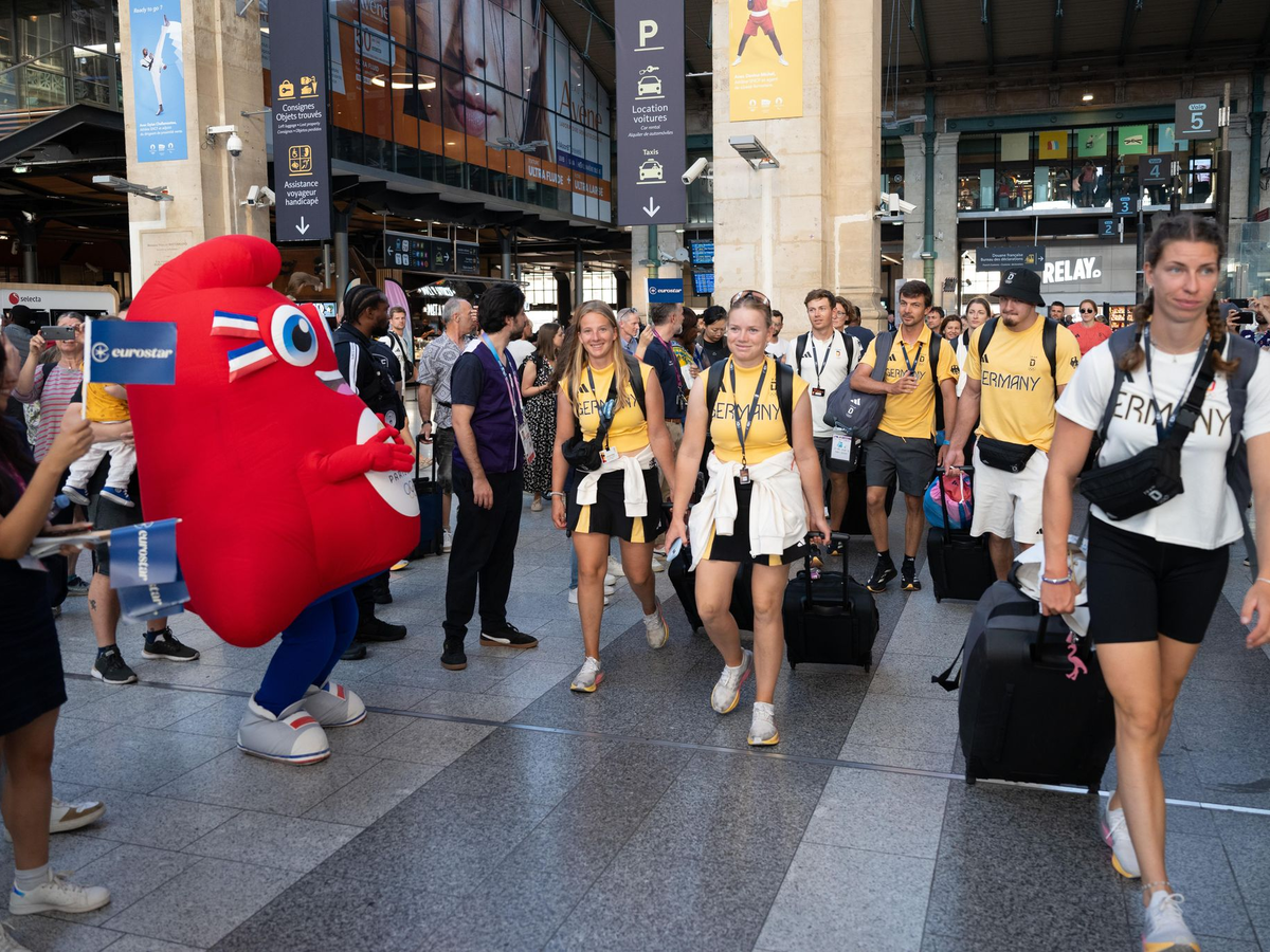 Am Vormittag hatten zahlreiche Mitglieder des deutschen Teams gemeinsam die Heimreise aus Paris angetreten. Verabschiedet wurden sie von einer Musikkapelle und dem Olympia-Maskottchen. Zu den Klängen von Nenas «99 Luftballons» und des französischen Klassikers «Aux Champs-Elysées» bestiegen die Sportlerinnen und Sportler am Gare du Nord den mit schwarz-rot-goldenen Fahnen geschmückten Sonderzug zur «Willkommensfahrt».