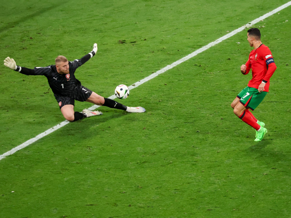 Auch er dürfte gejubelt haben, als Ronaldo in der 32. Minute im Strafraum der Tschechen an den Ball kam, deren überragender Torwart Jindrich Stanek aber mit einem fantastischen Reflex die Führung des Favoriten verhinderte, der mit der blitzsauberen Bilanz von zehn Siegen in zehn Spielen durch die EM-Qualifikation marschiert war. Ronaldo per Hacke eine Minute später auf Vitinha, Ronaldo in der 45. Minute mit einem Linksschuss. Aber der Ball wollte nicht ins Tor. 73 Prozent Ballbesitz nutzten da auch nichts. Es wurde ein Geduldsspiel für den Titelfavoriten.