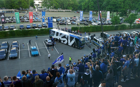 Er sollte recht behalten. Weit vor dem Anpfiff machten die Fans des Hamburger Teams das Stadion zu einem magischen Ort. Tausende HSV-Anhänger hatten blaue T-Shirts oder Pullover an. Schon bei der Ankunft mit dem Bus wurde die Mannschaft begeistert empfangen.