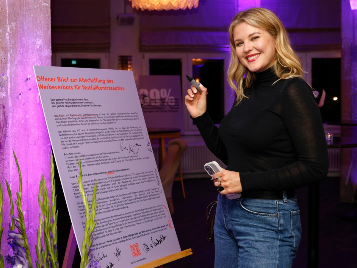 "Ob, wann und wie viele Kinder eine Frau haben möchte, ist allein ihre Entscheidung. Daher darf es keine Einschränkungen beim Zugang zu Verhütungsmitteln geben." so Kristina Lunz, Co-CEO von CFFP (Centre for Feminist Foreign Policy) und Unterstützerin des offenen Briefes, der die Politik auffordert, das Werbeverbot zu Notfallverhütungsmitteln zu streichen. Absender dieses offenen Briefes sind verschiedene Organisationen, u. a. das Netzwerk FRAUEN100, die Menschenrechtsorganisation Terre des Femmes und die Ärztliche Gesellschaft zur Gesundheitsförderung (ÄGGF), sowie namhafte Unterstützer*innen und die Initiative #nurwennichesweiss des Arzneimittelherstellers Perrigo. Sie fordern die Bundesregierung auf, die Versprechen des Koalitionsvertrags umzusetzen und die Selbstbestimmungsrechte von Frauen in Deutschland zu stärken. Insbesondere die Streichung des entsprechenden Passus im HWG, der die Werbung für Notfallkontrazeptiva verbietet, ist ein wichtiger Schritt in diese Richtung. Die Pille danach gehört laut Weltgesundheitsorganisation (WHO) zu den unentbehrlichen Arzneimitteln. Doch ihre Bedeutung wird durch das bestehende Werbeverbot untergraben. Eine Aufhebung des Verbots kann dazu beitragen, ungeplante Schwangerschaften zu verhindern und in der Folge auch die Zahl von Schwangerschaftsabbrüchen zu reduzieren. Die Befürchtungen eines Missbrauchs des Medikaments, aufgrund derer der Passus im HWG mit Entlassung der Pille danach aus der Rezeptpflicht eingeführt wurde, sind unbegründet - wie Daten aus dem europäischen Ausland zeigen.[4] Katja Burkard, Moderatorin und Autorin ist überzeugt: "Ein selbstbestimmtes Leben heißt für mich unter anderem so gut wie möglich informiert zu sein. Nur dann kann ich Lebenswegen und Möglichkeiten auswählen. Deshalb sollte das Werbeverbot für die Pille danach aufgehoben werden."