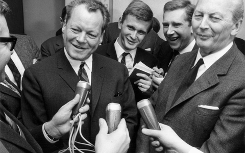 Die Koalition aus CDU/CSU und FDP unter Kanzler Erhard bricht Oktober 1966 auseinander. Wirtschaftliche Differenzen und Erhards unentschlossener Kurs führen zum Bruch: Die FDP-Minister Scheel, Mende, Dahlgrün und Bucher verlassen die Regierung. Ein Monat später ist Erhards Kanzlerschaft beendet. Sein Nachfolger Kurt Georg Kiesinger (CDU) führt bis zur Bundestagswahl 1969 eine Große Koalition aus Union und SPD.