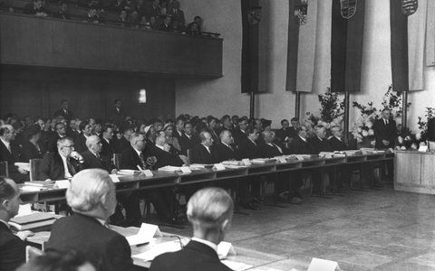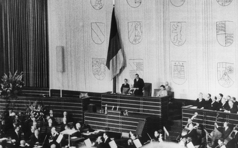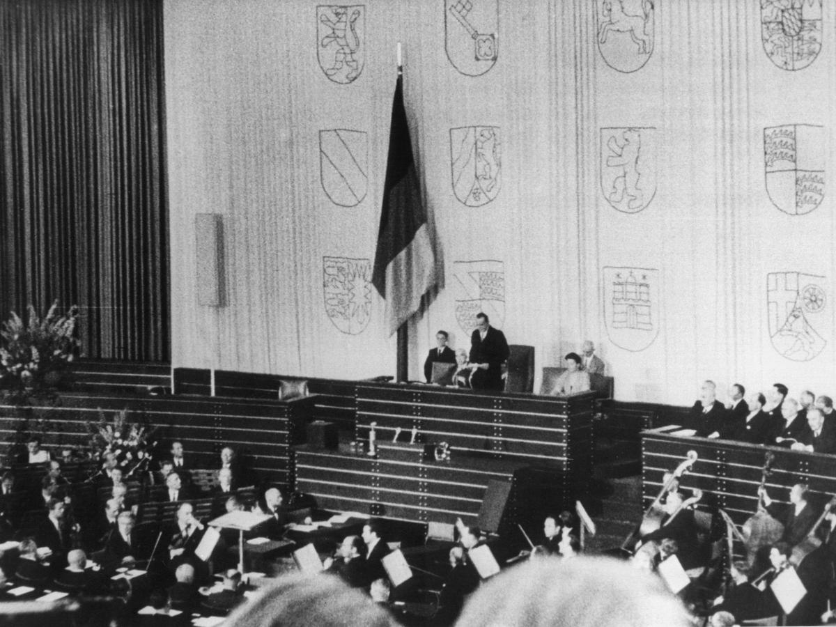 Provisorisch wie ganz Deutschland war auch die erste Sitzung des am 14. August 1949 gewählten Bundestags: Die Abgeordneten kamen in Bonn in der einstigen Turnhalle der Pädagogischen Akademie zusammen, die zuvor zum Plenarsaal umgebaut worden war. «Was erhofft sich das deutsche Volk von der Arbeit des Bundestags?», fragte Alterspräsident Paul Löbe bei der Eröffnung der Sitzung und gab auch gleich selbst die Antwort: «Dass wir eine stabile Regierung, eine gesunde Wirtschaft, eine neue soziale Ordnung in einem gesicherten Privatleben aufrichten, unser Vaterland einer neuen Blüte und neuem Wohlstand entgegenführen.»