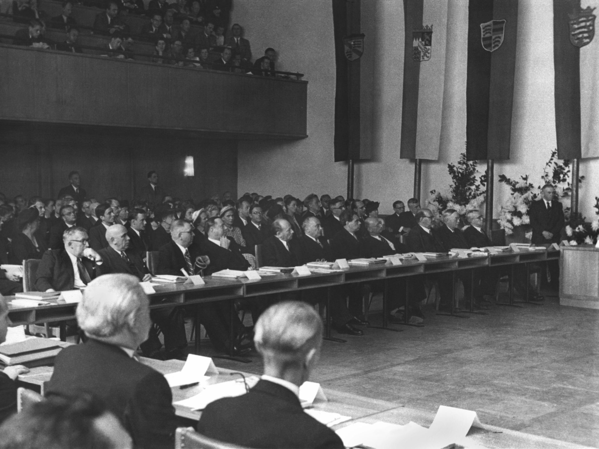Als der Bundestag an diesem 7. September um 16.05 Uhr zusammentrat, hatte der Bundesrat seine erste Sitzung schon hinter sich. Die Länderkammer nahm ihre Arbeit um 11.12 Uhr auf - ebenfalls im Provisorium Pädagogische Akademie, aber nicht in der früheren Turnhalle, sondern in der einstigen Aula. Und während im Bundestag Beethoven zur Eröffnung der Sitzung gespielt wurde, war es im Bundesrat Bach. Der Bundestag als Gesetzgeber, der Bundesrat als Instrument zur Wahrung der Länderinteressen und ein Stück weit auch als Korrektiv - so hatten die Mütter und Väter des Grundgesetzes die föderale Ordnung des neuen Staates festgelegt.