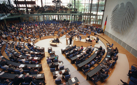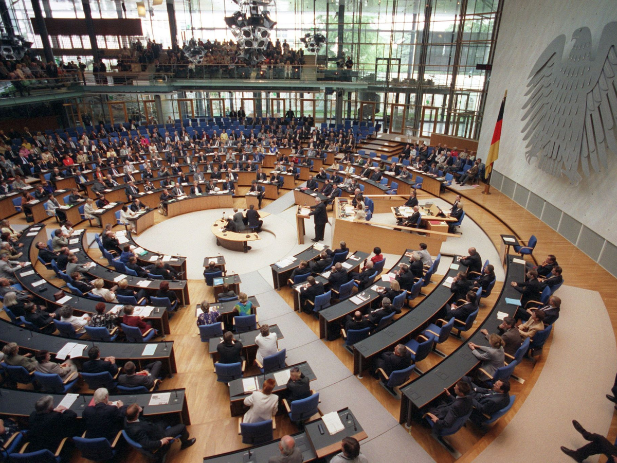 75 Jahre Bundestag - das bedeutet viel parlamentarische Kleinarbeit, aber auch immer wieder große Debatten zu Schlüssel- und Richtungsfragen der Republik. So erlebte das Parlament im Februar 1952 eine 20-stündige Redeschlacht zur Wiederbewaffnung Deutschlands. Sogar 22 Stunden dauerte das parlamentarische Gefecht um die Ostverträge im Februar 1972. Hitzige Debatten wurden 1968 zur Verabschiedung der Notfallgesetze, 1974 zur Reform des Abtreibungsparagrafen 218, 1981 zum Nato-Doppelbeschluss oder 1990 zum Einigungsvertrag geführt.