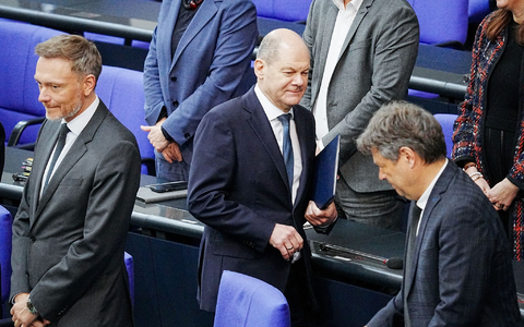• Bundeskanzler Olaf Scholz, Finanzminister Christian Lindner und Wirtschaftsminister Robert Habeck beteiligen sich an den Beratungen zum Heizungsgesetz. - Foto: Kay Nietfeld/dpa