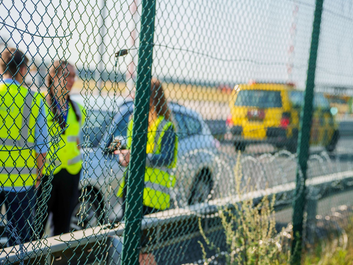 Die insgesamt acht Aktivisten seien gegen 05.00 Uhr auf das eingezäunte Gelände vorgedrungen, berichtet die Bundespolizei. Während ein Mensch am Zaun hängengeblieben war, konnten sieben Personen am frühen Morgen in den Sicherheitsbereich vordringen und sich an den Köpfen der beiden zentralen Start- und Landebahnen festkleben.