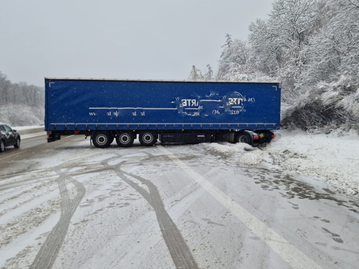 A4 Höhe Erfurt OT Waltersleben - In den Mittagsstunden des heutigen Tages kam es auf der A4 in Fahrtrichtung Frankfurt a.M. zwischen den Anschlussstellen Erfurt-Ost und dem Parkplatz Willroder Forst zu einem Verkehrsunfall mit erheblichen Behinderungen. Ein tschechischer Kraftfahrer geriet mit seinem Sattelzug auf der rechten Fahrspur ins Schleudern. Dabei drehte sich die Sattelzugmaschine ein und rutschte nach rechts von der Fahrbahn in den Straßengraben. Der Auflieger kam quer zur Fahrbahn zum Stehen und ragte schließlich über den rechten und mittleren Fahrstreifen. Aufgrund dessen mussten beide Fahrstreifen für zwei Stunden gesperrt werden. Nach bisherigen Erkenntnissen ist die Unfallursache auf eine den Witterungsverhältnissen unangepasste Fahrweise zurückzuführen. Die Gesamtsachschadenshöhe konnte zunächst noch nicht ermittelt werden. Personen wurden nicht verletzt.