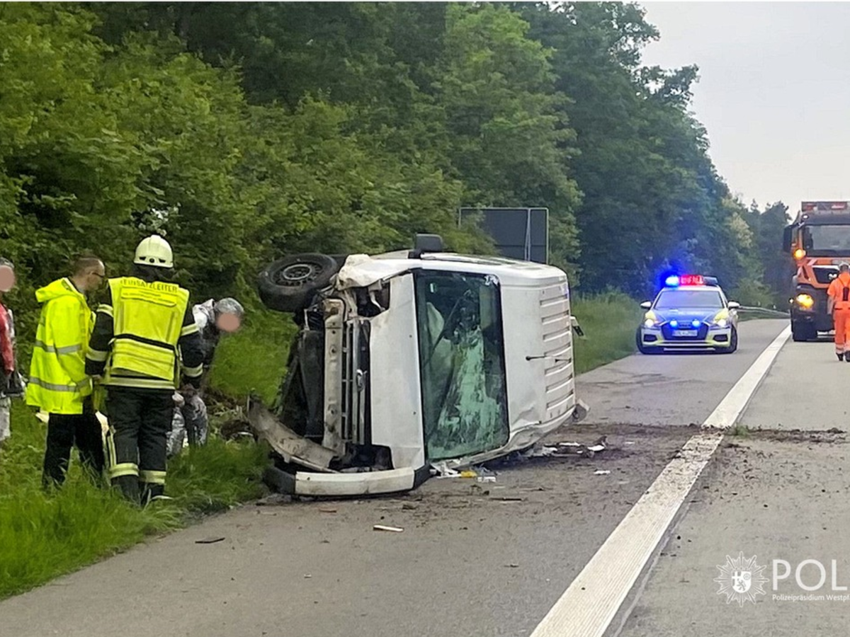 22.05.2024 - 11:35:24 | presseportal.deVor Ort stellten die ausgerückten Polizeibeamten ein Firmenfahrzeug fest, das offenbar in einen Unfall verwickelt und dabei auf der linken Fahrzeugseite gelandet war. Drei Männer befanden sich neben dem Fahrzeug, zwei von ihnen waren leicht verletzt.
