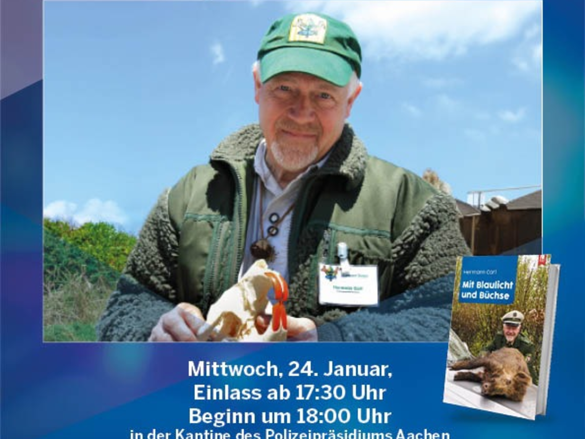 15.01.2024 - 12:35:44 | presseportal.deIm vergangenen Jahr veröffentlichte er außerdem sein Buch "Mit Blaulicht und Büchse": mit vielen spannenden, lustigen und kuriosen Geschichten aus seinem Jagd- und Polizeirevier. So erfährt man zum Beispiel, wie man einen Geisterbock zur Strecke bringt, wie man sich als junger Streifenpolizist im Kölner Karneval zurechtfindet und warum es gut ist, immer auf seinen Schutzengel zu hören.