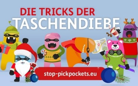 Auch auf der Hauptseite der Homepage der Bundespolizei: "www.bundespolizei.de" unter der Rubrik "Meldungen" geben 6 kleine Monster Tipps zum Schutz vor Taschendieben.