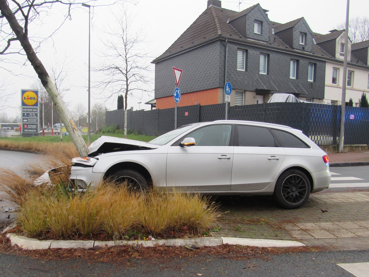Gegen 8:35 Uhr fuhr der 34 Jahre alte Wülfrather mit seinem Audi A4 auf der Johannes-Flintrop-Straße in Richtung Jubiläumsplatz. Der Fahrer, der - wie sich später herausstellte - unter Alkoholeinfluss stand, wollte den Kreisverkehr an der Johannes Flintrop-Straße/Seibelstraße/Straße "Klein Goldberg" passieren, verlor dabei jedoch die Kontrolle über sein Fahrzeug: Er fuhr über eine vorgelagerte Verkehrsinsel und kollidierte mit einem dort gepflanzten Baum. Anschließend floh der Wülfrather fußläufig über die Ötzbachstraße zur Seibelstraße, wo er von den alarmierten Beamtinnen und Beamten eingeholt werden konnte. Der Fahrer blieb trotz der starken Kollision glücklicherweise unverletzt, jedoch stellten die Polizistinnen und Polizisten einen starken Alkoholgeruch in der Atemluft des 34-Jährigen fest.
