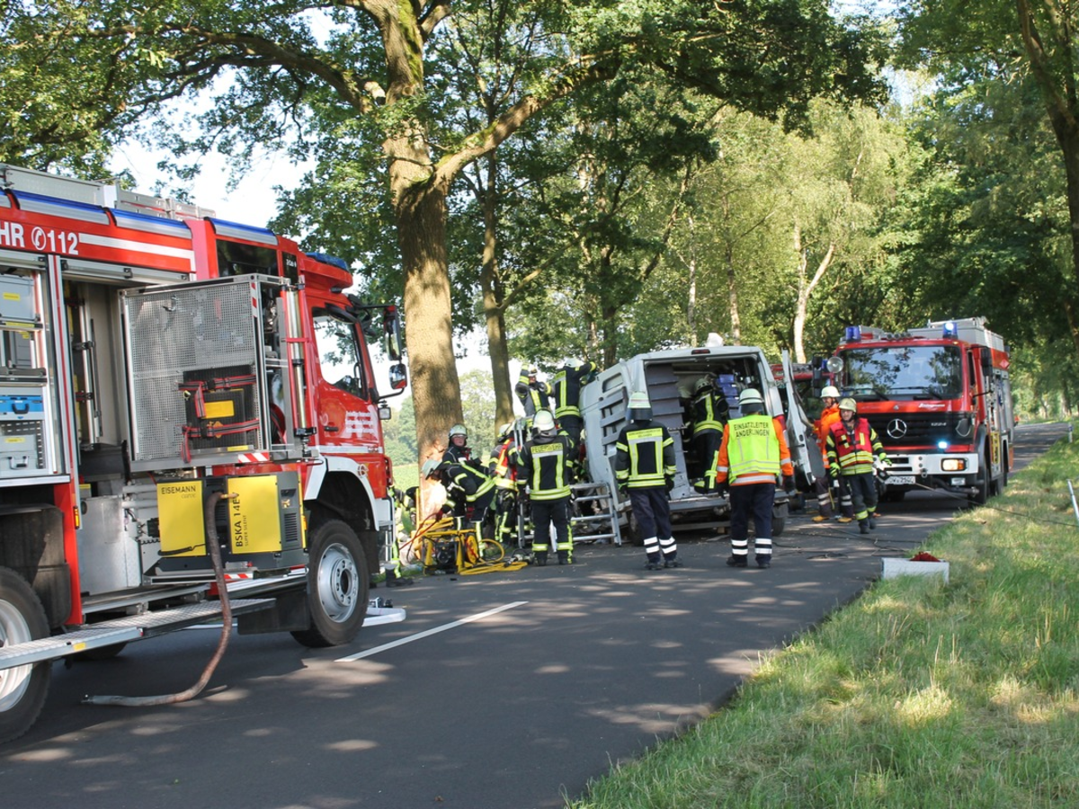 26.06.2024 - 09:00:25 | presseportal.deAuf der K 109 zwischen Anderlingen und Haaßel ist der Fahrer eines Kleintransporters von der Straße abgekommen und frontal gegen einen Baum gefahren, hierbei wurde der Fahrer in seinem Fahrzeug schwer eingeklemmt.