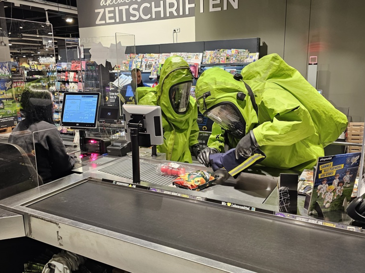 Arnsberg - Am Abend des 14.06.2024 stand eine Übung mit Chemikalienschutzanzügen (CSA) auf dem Plan des Löschzuges Neheim. Das Ausbilderteam hat sich hierfür etwas außergewöhnliches einfallen lassen. Zwei Trupps mussten die Kommunikation und die Motorik unter einem "CSA" trainieren. Hierfür hat sich der Supermarkt EDEKA Weber in Neheim bereit erklärt, ihre Räumlichkeiten im laufenden Betrieb zur Verfügung zu stellen. Es galt unter diesen sehr sperrigen Anzügen einen Einkauf zu absolvieren. Hierzu wurde ein Einkaufszettel mit Produkten, die gefunden werden mussten, an die Trupps übergeben. Da unter einem CSA die Sicht und die Bewegung sehr stark eingeschränkt sind, gestaltete sich diese Aufgabe sehr schwierig. Um auch die Kommunikation zu trainieren, wurden den Trupps zwischendurch über Funk verschiedene Aufgaben übermittelt. So mussten sie z.B. Inhaltsstoffe oder Gefahrenhinweise von bestimmten Produkten finden und per Funk an die Übungsleitung übermitteln. Anschließend musste der Einkauf an der Kasse bezahlt werden, auch dies stellte eine Motorische Herausforderung dar. Alle Aufgaben konnten von den Trupps absolviert werden. Der Löschzug Neheim bedankt sich bei EDEKA Weber für die sehr gute Zusammenarbeit und die Bereitstellung ihrer Räumlichkeiten.