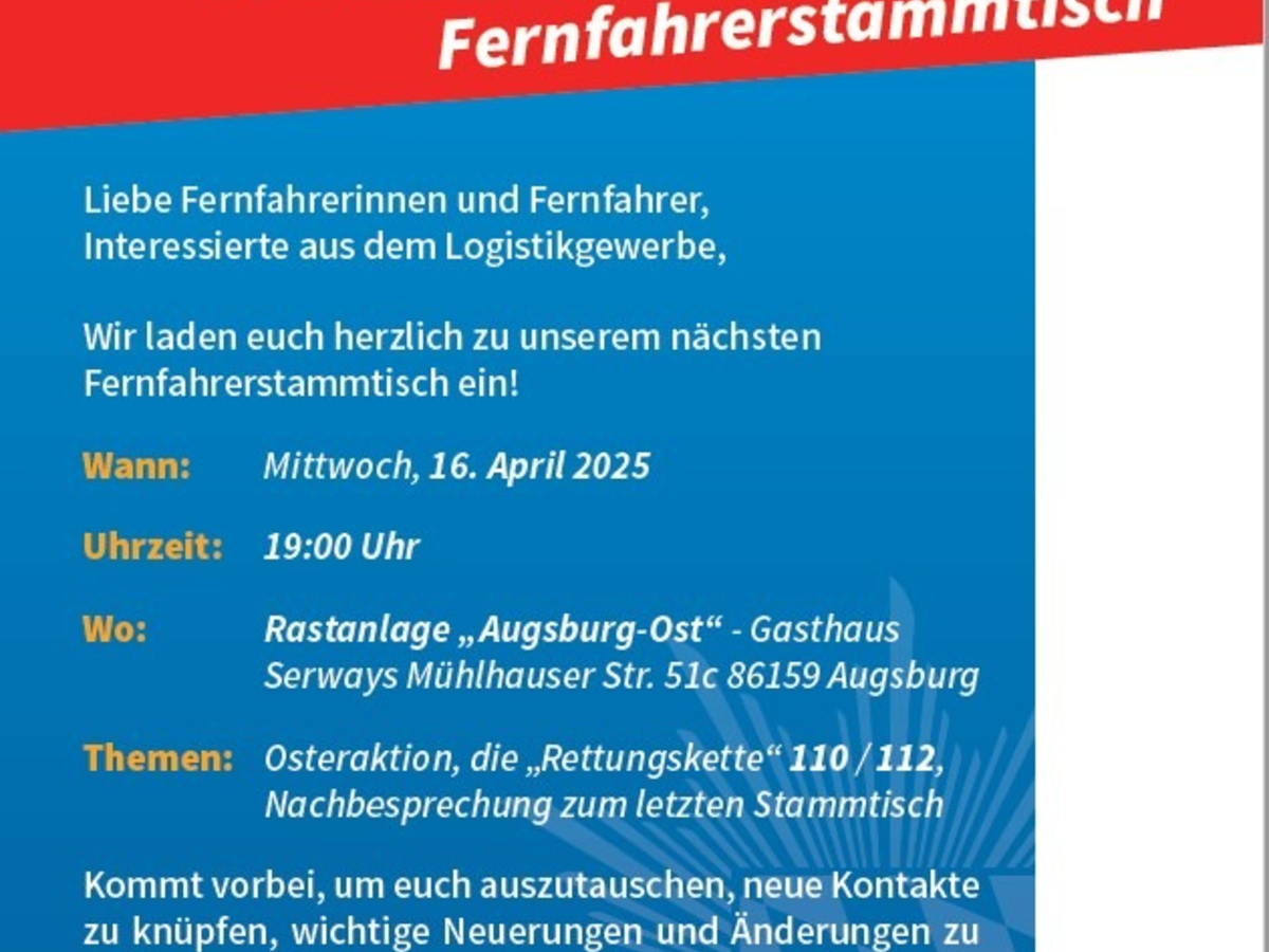 POL Schwaben Nord: Fernfahrerstammtisch am 16.04.2025