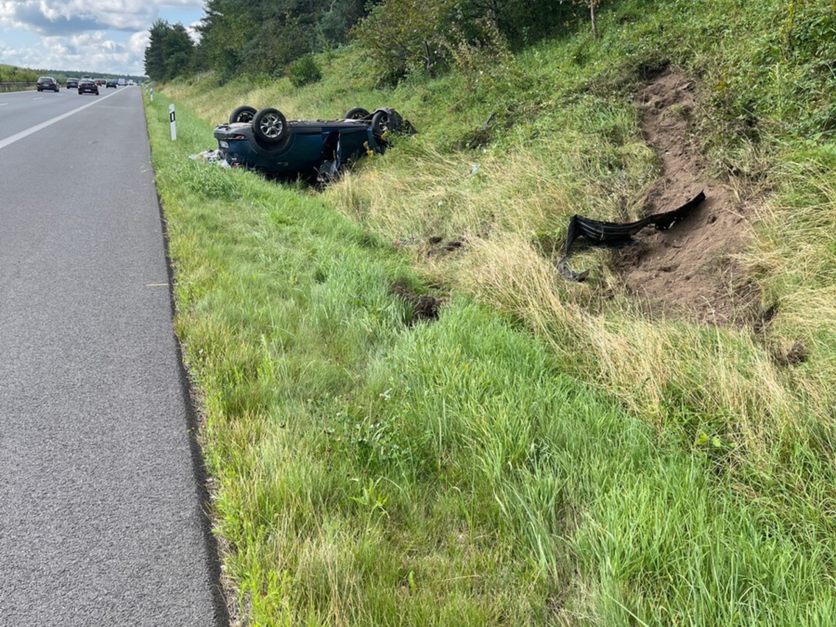 Nach gegenwärtigem Erkenntnisstand der eingeleiteten Verkehrsunfallermittlungen sei die alleinbeteiligte, 33-jährige Fahrerin eines Mazda aus bislang ungeklärter Ursache nach rechts von der Fahrbahn abgekommen. Der PKW habe sich dann überschlagen und in der Böschung auf dem Dach liegend zum Stillstand gekommen.