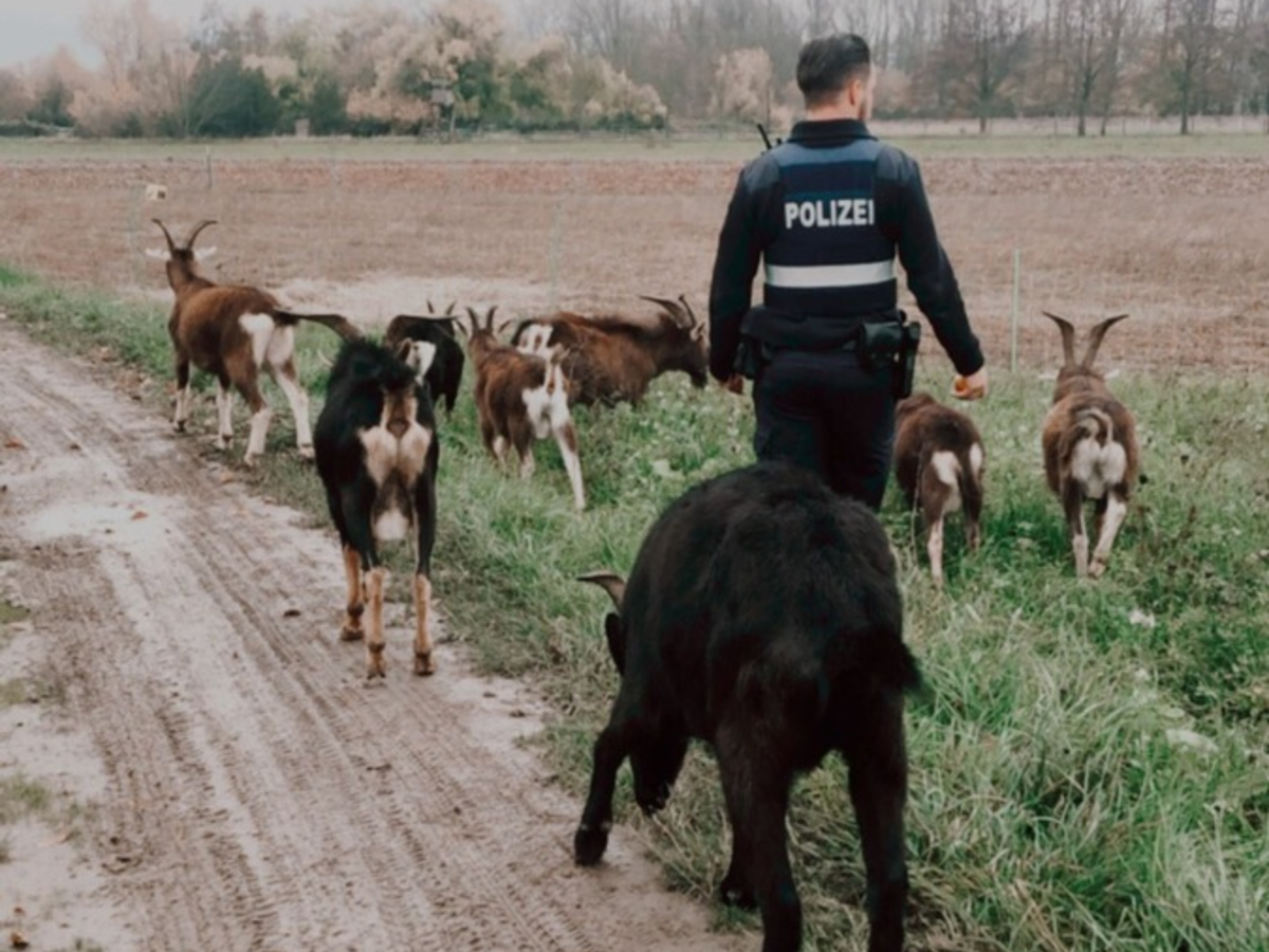 Freilaufende Ziegen belagern Kreisverkehr