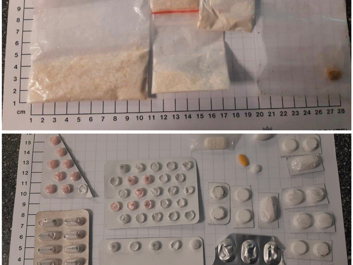 Insgesamt wurden 18,4g Amphetamine, 1,9g Heroin und 28 verschreibungspflichtige Tabletten gefunden.