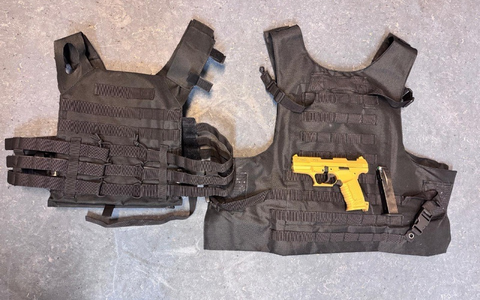Gegen 22:30 Uhr stellten die Einsatzkräfte die beiden 19-Jährigen fest, die augenscheinlich beide eine Schutzweste unter ihrer Jacke trugen. Der Syrer und der Deutsche waren komplett schwarz gekleidet. Auf Nachfrage erklärte der deutsche Staatsangehörige, dass er eine Schusswaffe in seiner Umhängetasche mit sich führe. Der Essener wurde aufgefordert, die Tasche, die er unter dem Arm geklemmt trug, ganz langsam an die Uniformierten zu übergeben. In der Tasche fanden sie eine geladene Schreckschusswaffe und beschlagnahmten diese umgehend. Auf die Frage nach einem Waffenschein antwortete der junge Mann verneinend, woraufhin ihn die Beamten belehrten. Der Beschuldigte machte von seinem Aussageverweigerungsrecht Gebrauch und äußerte sich nicht weiter. In den Diensträumen stellten die Beamten die Identität zweifelsfrei fest und führten eine erkennungsdienstliche Behandlung durch, bei der sie Fingerabdrücke abnahmen und Lichtbilder anfertigten. Nach Abschluss der polizeilichen Maßnahmen entließen die Bundespolizisten den Beschuldigten und seinen Begleiter. Die beiden Schutzwesten wurden ebenfalls beschlagnahmt.