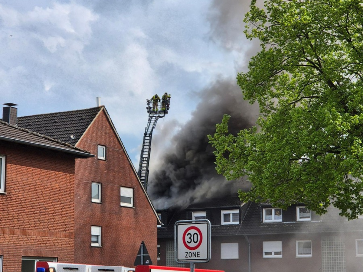 Datteln - Um 14ÂŹ:24 Uhr wurde die Feuerwehr Datteln zu einem Dachstuhlbrand an der Ohmstrasse alarmiert. Direkt nach Eintreffen der ersten KrĂ€fte bestĂ€tigte sich ein voll ausgedehnter Wohnungsbrand im ausgebauten Dachgeschoss eines Mittelhauses von drei MehrfamilienhĂ€usern, der sich bereits auf den Dachstuhl ausgebreitet hatte. Daraufhin wurde das Alarmstichwort auf Feuer 4 erhöht, was zur Folge hatte, dass alle Einheiten der Feuerwehr Datteln alarmiert wurden. Die im Rahmen der interkommunalen Zusammenarbeit alarmierte Feuerwehr Waltrop unterstĂŒtzte mit einer zusĂ€tzliche Drehleiter. Nur durch den intensiven Einsatz der beiden Drehleitern mit Wenderohren konnte ein Ăbergreifen auf die benachbarten HĂ€user verhindert werden. Ein Innenangriff war in der Anfangszeit nur sehr eingeschrĂ€nkt möglich, da ein Zugang zur Brandwohnung nicht möglich war. Die Bewohner der HĂ€user wurden vorrĂŒbergehend mit einem Bus der Vestischen Strassenbahnen ins DRK Heim gebracht und dort von den Helfern des DRK Datteln betreut und versorgt. Die nĂ€chsten Tage werden die Bewohner des betroffenen Hauses bei Verwandten oder Bekannten verbringen. Insgesamt befanden sich ĂŒber 50 EinsatzkrĂ€fte mit 14 Fahrzeugen der Feuerwehr Datteln, Feuerwehr Waltrop, sowie des Rettungsdienstes der Stadt Datteln, Recklinghausen und Castrop Rauxel im Einsatz. Das gesamte GebĂ€ude ist nicht mehr bewohnbar, und wurde durch die Polizei versiegelt und an die Brandursachenermittlung ĂŒbergeben. (th)