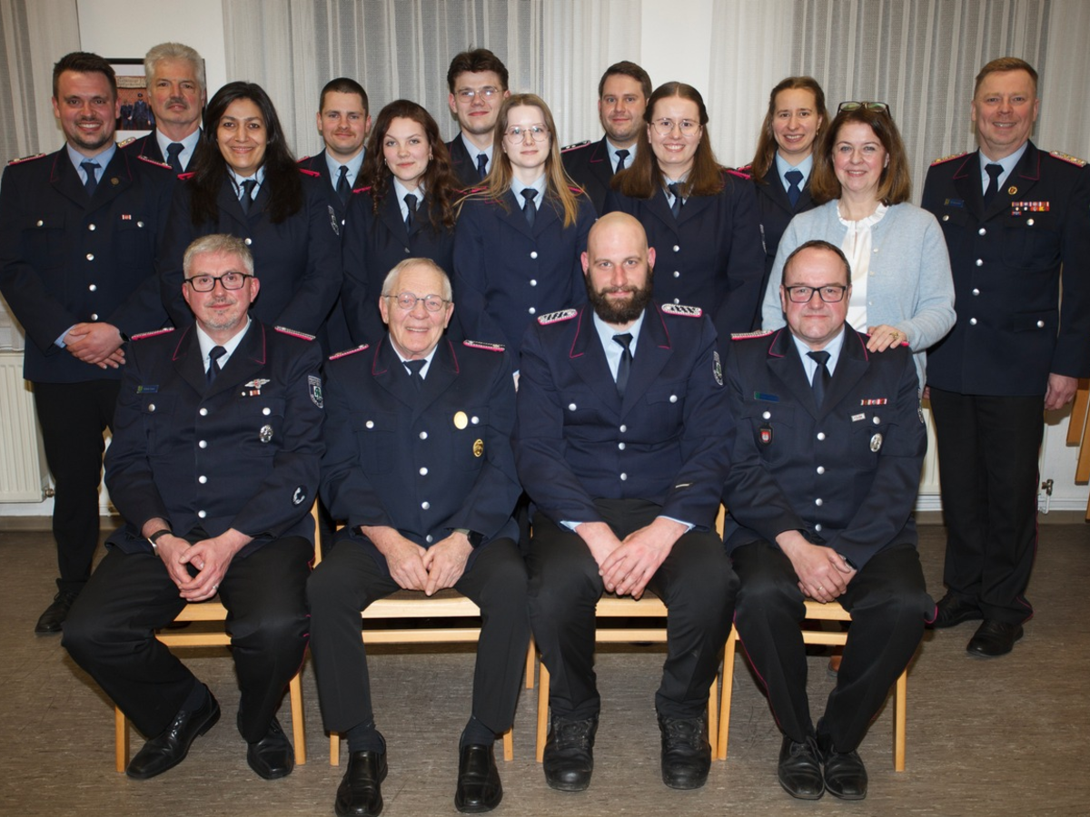 Neu in die Einsatzabteilung aufgenommen wurden Marina Rabe, Hannah Weißenberg, Luca Sucker und Killian Rabe, die bereits erfolgreich ihre Qualifikationsstufe 1 abgeschlossen haben. Zudem wurde Jasmin Hübner zur Feuerwehrfrau ernannt.