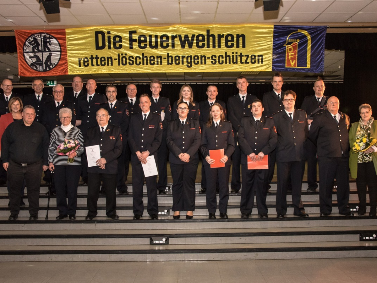 Ca. 200 Gäste hatten sich in der Aula des Gustav-Heinemann-Schulzentrums eingefunden, um mit dem Löschzug Hiesfeld zu feiern. Besonders freute sich der Löschzugführer Rüdiger Paetzel über die Anwesenheit zahlreiche Förderer des ehrenamtlichen Engagements sowie über die Anwesenheit der Vertreter der Verwaltung, der Fraktionen des Rates, der Hilfsorganisationen und der benachbarten Löschzüge. Ebenfalls konnten die Bürgermeisterin, Frau Michaela Eislöffel und der Leiter der Feuerwehr, Ulrich Borgmann, begrüßt werden. Beide würdigten in ihren Reden die Leistungen der Hiesfelder Wehr und betonten die Bedeutung des ehrenamtlichen Feuerwehrdienstes für das Allgemeinwohl der Bürger. Im Rückblick auf das Jahr 2023 bedankte sich Frau Eislöffel bei den Einsatzkräften für die Erledigung von fast 90 Einsätzen. Sie erinnerte noch einmal an die zeitintensiven Einsätze bei den Starkregenereignissen und an den mehrstündigen überörtlichen Einsatz zu Weihnachten in Oberhausen am Ruhrdeich. Auch bedankte Sie sich bei den ca. 60 Frauen und Männer der Einsatzabteilung für die Bereitschaft sich in der Freizeit unentgeltlich ständig für den Einsatz am Bürger fort- und weiterzubilden. Auch ist der Löschzug Hiesfeld ein wichtiger und verlässlicher Partner für das Vereins- und kulturelle Leben im Dorf und in der Stadt Dinslaken. Im Rahmen des Jahresfestes konnten wieder mehrere Ehrungen und Beförderungen ausgesprochen werden. Eine besondere Ehrung erhielt Manfred Lindemans, der für seine 65- jährige Mitgliedschaft in der Freiwilligen Feuerwehr ausgezeichnet wurde. Nach den Ehrungen und Beförderungen wurde, das vom Löschzug traditionell selbst zubereitete Karbonadenessen serviert. Bei Musik, Tanz und guten Gesprächen genossen alle anwesenden Gäste den weiteren Abend.