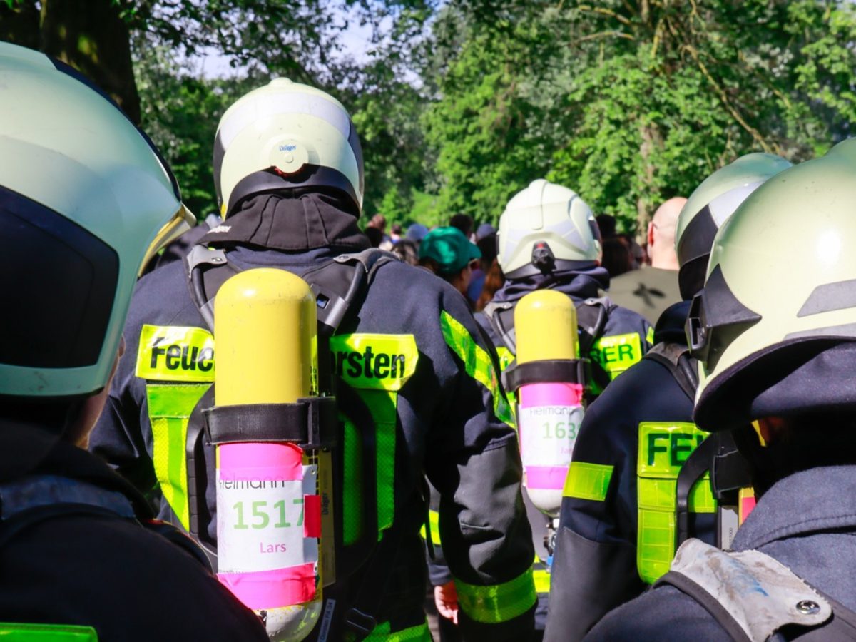 "Ich habe mich sehr gefreut, dass insgesamt 21 Kameradinnen und Kameraden aus den Löschzügen Altstadt, Holsterhausen und Hervest-Dorf den Lauf unterstützt haben. Allen gilt mein großer Dank für die großartige Repräsentation unserer Feuerwehr", sagt Andreas Fischer, Leiter der Feuerwehr. Mehrere Mitglieder aus den Löschzügen sind dabei nicht nur mit einem Feuerwehr-T-Shirt präsent gewesen, sondern auch durch ihre Schutzausrüstung. Jacke, Hose, Schuhe und Helm bringen einige Kilo Zusatzgewicht und lassen die Kameraden noch einmal mehr Schwitzen. Dazu durfte natürlich auch die Druckluftflasche aus Stahl mit Atemluft auf dem Rücken nicht fehlen.