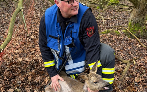 11.03.2026 - 09:56:25 | presseportal.deVor Ort stellten die Feuerwehrleute fest, dass sich ein sehr junges Reh mit dem Kopf im Zaun verfangen hatte und nicht mehr in der Lage war, seinen Kopf aus dem Zaun heraus zu ziehen. Die Kollegen nahmen das Tier behutsam auf den Arm und schnitten die Maschen um den Kopf des Rehes auf, um das Tier schonend zu befreien.