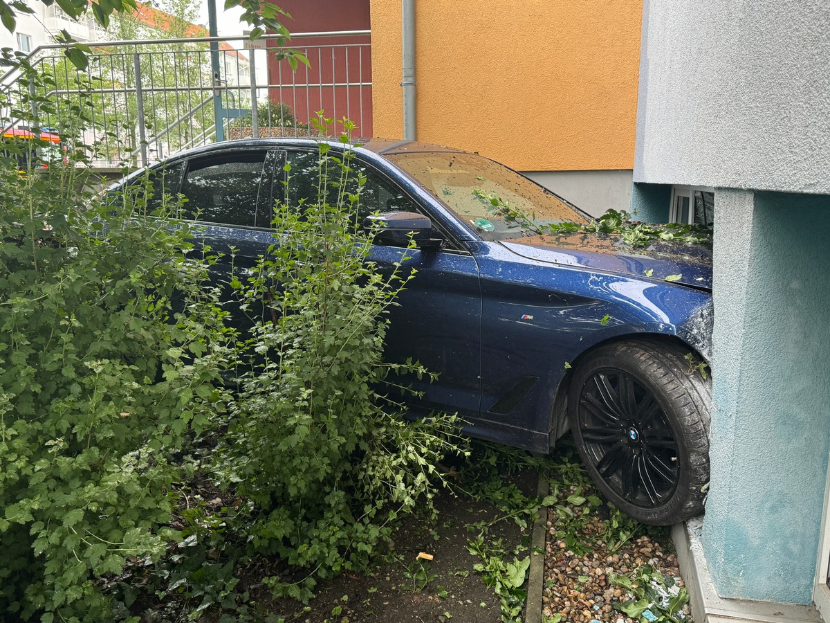 Aus noch zu ermittelnder Ursache ist am heutigen Nachmittag die Lenkerin eines PKW BMW mit ihrem Fahrzeug von der Fahrbahn abgekommen. Sie streifte mit dem BMW ein GelĂ€nder, durchfuhr ein GebĂŒsch und fuhr in das Fenster eines SanitĂ€rraumes der 16. Grundschule, woraufhin das Fahrzeug zum Stehen kam. Die Fahrzeugfront ragte etwa einen Meter durch das Fenster in den Raum hinein. Bei dem Unfall wurden die Fahrzeuginsassen, zwei weibliche Personen im Alter von 22 und 33 Jahren sowie ein etwa drei Monate altes Kind, leicht verletzt. WĂ€hrend die drei Personen vom Rettungsdienst medizinisch versorgt wurden, sicherten EinsatzkrĂ€fte der Feuerwehr das Unfallfahrzeug und erkundeten das GebĂ€ude von innen. Zum Zeitpunkt des Unfalles befanden sich keine Personen in dem betroffenen Bereich, so dass weder SchĂŒler, noch Bedienstete der Schule verletzt wurden. Der Hortbetrieb konnte uneingeschrĂ€nkt fortgefĂŒhrt werden. Mit Rettungswagen wurden die Patienten in ein Krankenhaus transportiert. Die Polizei ist vor Ort und hat die Ermittlungen zur Unfallursache aufgenommen. Bis zur Bergung des Fahrzeuges durch ein Bergungsunternehmen bleibt ein Löschfahrzeug der Berufsfeuerwehr vor Ort. Weiterhin wird die Unfallstelle einem Statiker vorgestellt, welcher eine Bewertung hinsichtlich möglicher FolgeschĂ€den am GebĂ€ude selbst beurteilen wird. Zu diesem Einsatz wurden 44 EinsatzkrĂ€fte der Feuer- und Rettungswachen Albertstadt, Löbtau und Altstadt, der Rettungswachen Friedrichstadt und Johannstadt sowie der B-Dienst alarmiert.