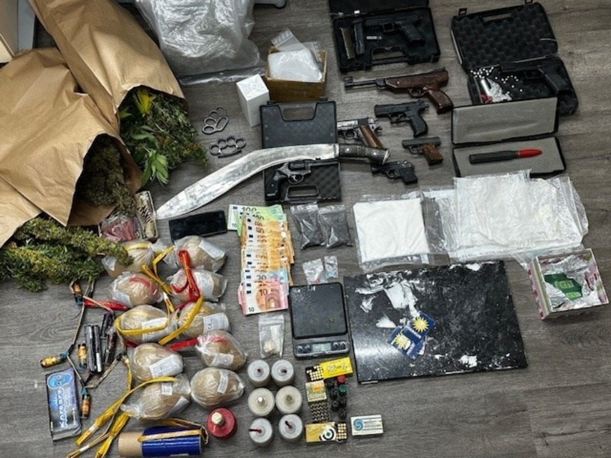 Hier die Auflistung der Drogen, der Beweismittel und des mutmaßlichen Diebesguts: