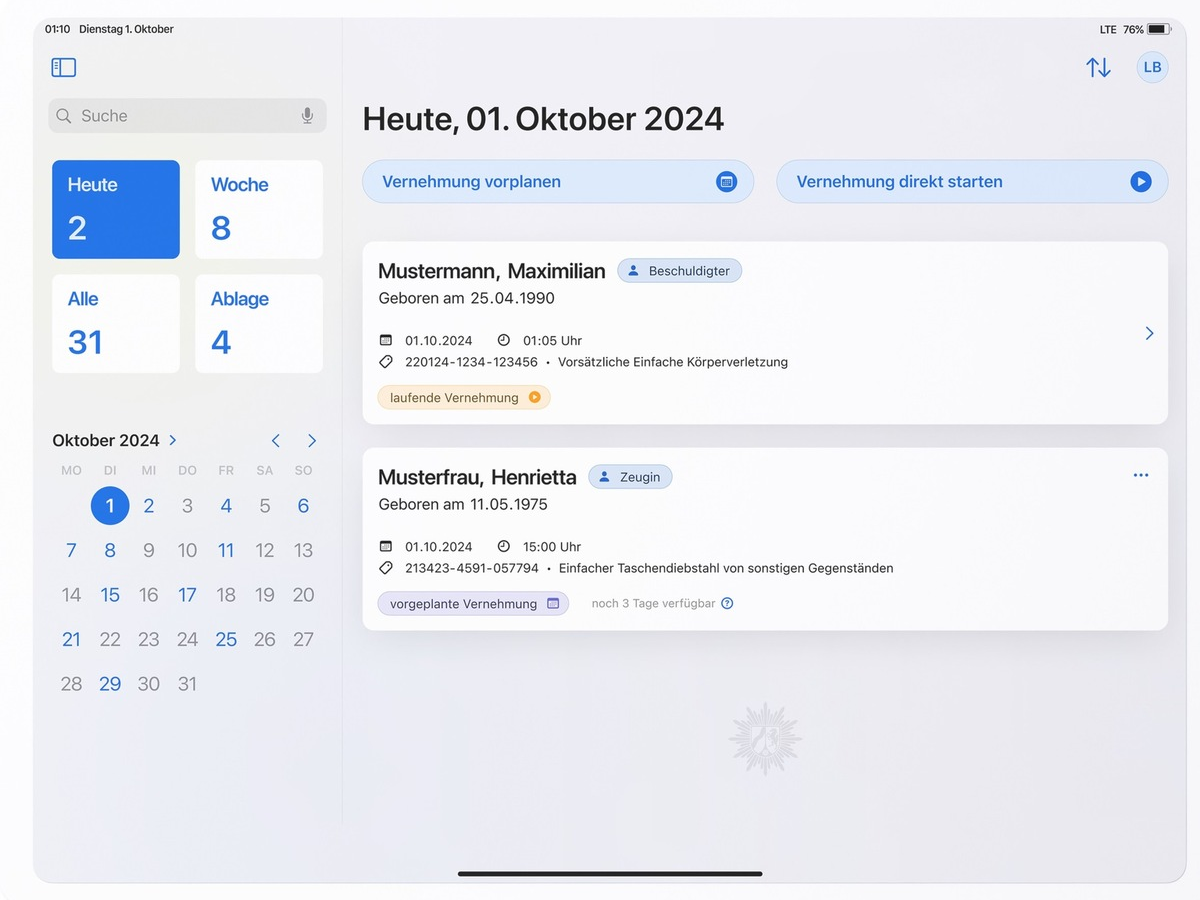 Bereits seit September vergangenen Jahres nutzen erste Ermittlerinnen und Ermittler die neue digitale Vernehmungs-App der Polizei NRW. In Aachen, Düren sowie beim Landeskriminalamt NRW wurden knapp zweihundert Einsatzkräfte mit Tablets und der Vernehmungs-App ausgestattet. "Sehr interessant und lange auf diese Möglichkeit gewartet", "Macht Spaß!" oder auch "Die App ist intuitiv. Besonders von dem problemlosen Übertragen in das polizeiliche Vorgangsbearbeitungsprogramm war ich sehr begeistert.", lauteten die ersten Reaktionen der Expertinnen und Experten aus den Polizeibehörden. Der landesweite Rollout durch das Landesamt für Zentrale Polizeiliche Dienste NRW an insgesamt 2.500 Polizistinnen und Polizisten soll ab Februar 2025 starten.