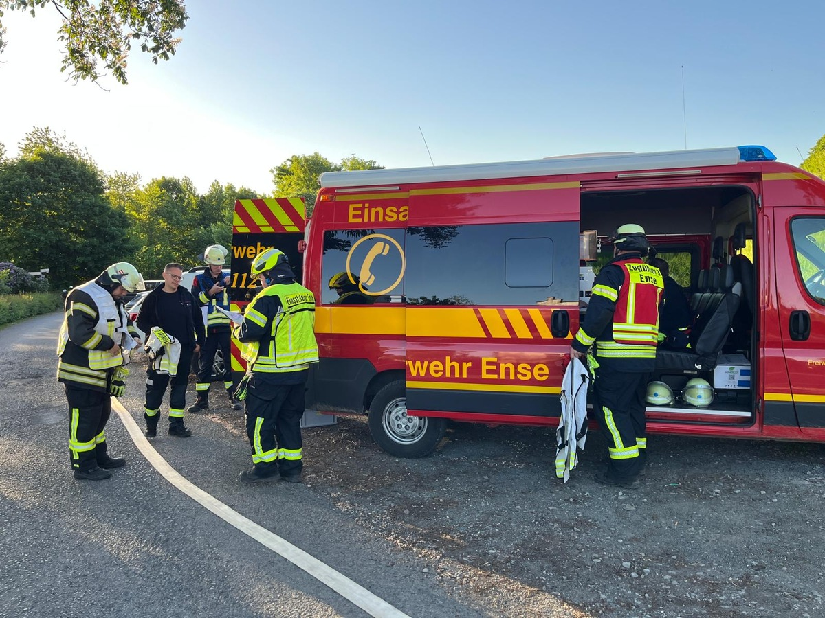 Ense - "Am Donnerstagabend, 15.05.25, übte die Feuerwehr Ense auf dem historischen Anwesen "Haus Füchten" an der Ruhr in Hünningen. Dabei waren die Löschzüge 1 aus Bremen, sowie Löschzug 3 (bestehend aus den Löschgruppen Höingen, Hünningen und Waltringen) im Einsatz. Ziel der Übung, die von Thomas Meier , Michael Peck und Andreas Vetter vorbereitet wurde, war es, verschiedene Einsatzszenarien durchzuspielen und die Zusammenarbeit der verschiedenen Einheiten zu trainieren. Während der Übung lag zunächst die Priorität auf der Menschenrettung; dafür mussten insgesamt sieben Personen aus verrauchten Bereichen "gerettet" werden. Dafür gingen mehrere Trupps unter Atemschutz vor, um die Personen zu finden und zu retten. Mit der Drehleiter wurden verschiedene Szenarien geübt, wie zum Beispiel die Menschenrettung an den hohen Gebäuden und auf verschiedenen Untergründen. Für die Wasserversorgung wurde eine Leitung von der Ruhr zum Einsatzort aufgebaut. Zur besseren Koordinierung der großen und relativ unübersichtlichen Einsatzstelle wurden insgesamt 4 Einsatzabschnitte gebildet. Die Einsatzleitung nutzte zudem eine Drohne, um immer einen aktuellen Überblick über die Lage zu behalten. Nachdem alle Übungsziele erreicht waren, trafen sich alle Beteiligten noch zu einer Nachbesprechung am Gerätehaus in Bremen."