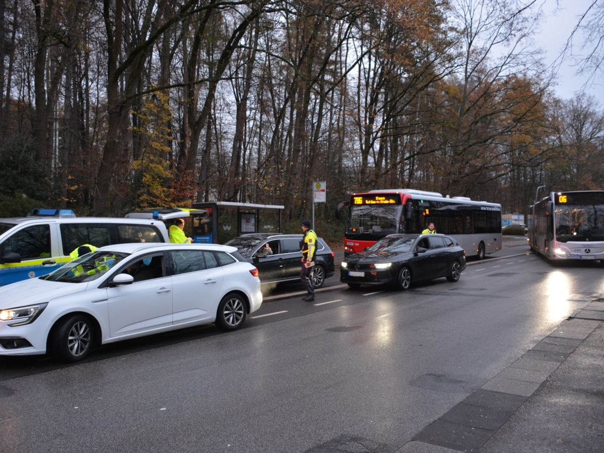 Um auf diese Problematik aufmerksam zu machen, kontrollierten am Dienstag, 25. November 2025, Einsatzkräfte der Wache Erkrath an der Haltestelle den Verkehr. In der relativ kurzen Zeit von 8 bis 8:15 Uhr, in der die Pendelbusse die Schülerinnen und Schüler an Bord nahmen, stellten sie bei 15 Autos eine überhöhte Geschwindigkeit fest und verwarnten die Fahrerinnen und Fahrer entsprechend.