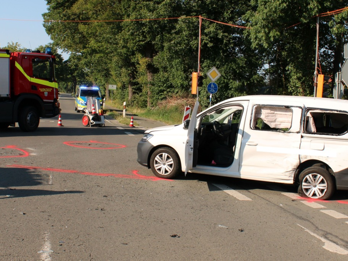 14.08.2024 - 12:33:24 | presseportal.deGegen 08:40 Uhr befuhr ein 53-Jähriger mit einem Mercedes Sprinter die Fabbenstedter Straße in Richtung Espelkamp. Mit im Wagen saß sein 59-jähriger Beifahrer aus Meerbeck. Als der Bückeburger die Kreuzung zur Alsweder Straße passieren wollte, kam aus dieser ein Volkswagen gefahren, an dessen Steuer ein 28-jähriger Rahdener saß. Somit kam es zur Kollision der beiden Fahrzeuge. Während sich der Rahdener schwere Verletzungen zuzog, erlitten die beiden Insassen des Mercedes leichtere Verletzungen. Alle wurden mittels Rettungswagen dem Krankenhaus Lübbecke zugeführt. Die Autos waren nicht mehr fahrbereit und mussten abgeschleppt werden.