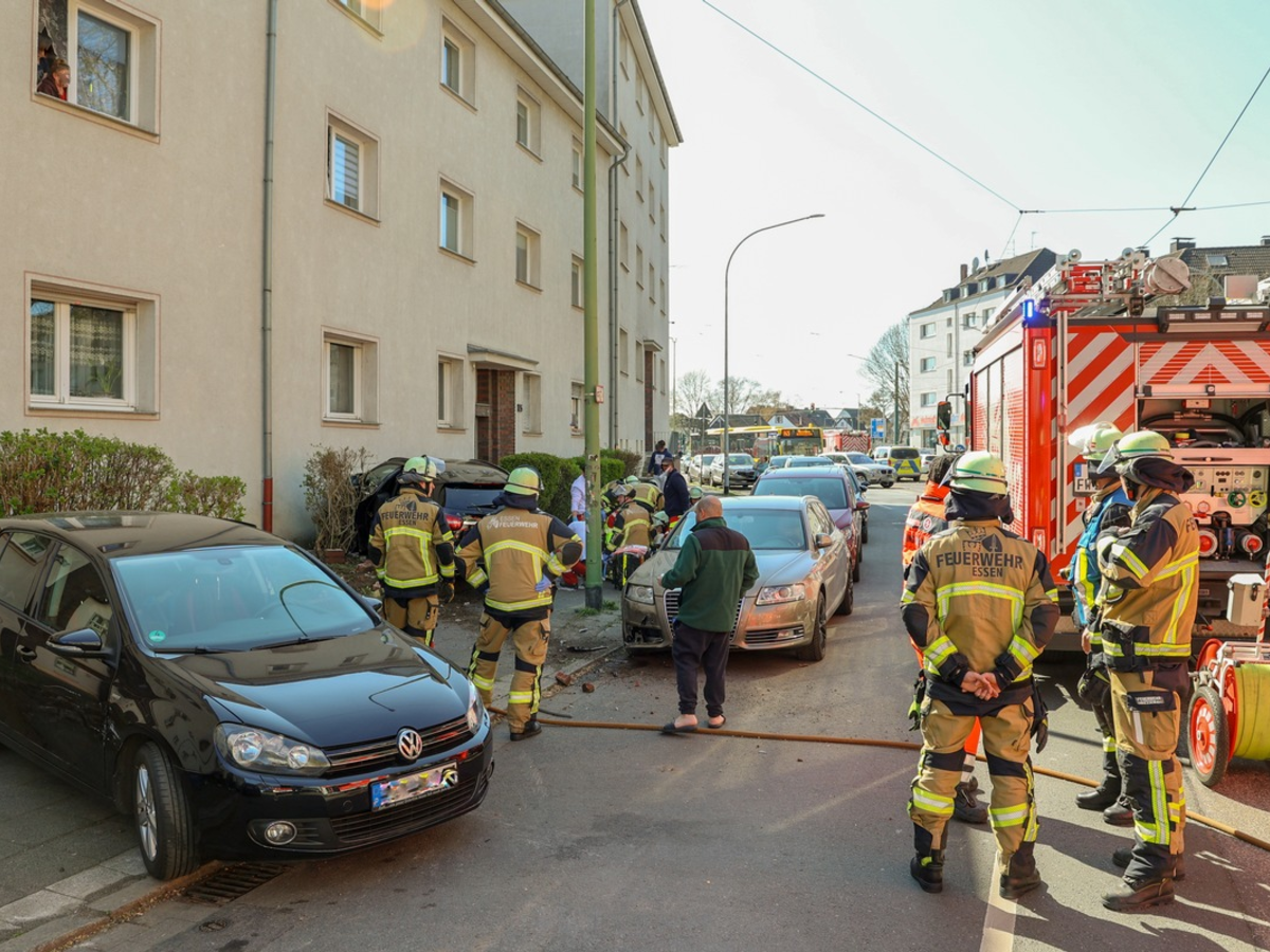 FW-E: Pkw kollidiert nach medizinischem Notfall mit Wohnhaus - Person konnte durch Ersthelfer aus dem Auto befreit werden
