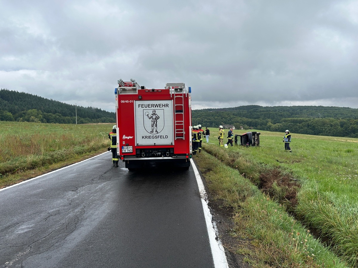 Fahrzeug kommt von der Fahrbahn ab und überschlägt sich