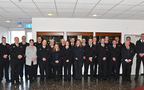 Im Anschluss nahm Wehrleiter Stappert noch die Beförderungen und Ehrungen vor. Von der Feuerwehrfrau zur Oberfeuerwehrfrau wurde Sarah Vollmer befördert. Vom Feuerwehrmann zum Oberfeuerwehrmann Fabian Dartmann und Simon LudĂ€scher. Von der Oberfeuerwehrfrau zur Hauptfeuerwehrfrau Marina Becker und vom Oberfeuerwehrmann zum Unterbrandmeister wurden Simon Fischer und Benjamin Nagel befördert. Vom Hauptfeuerwehrmann zum Unterbrandmeister Philipp Benk. Nach bestandener PrĂŒfung am Institut der Feuerwehr (IDF) NRW wurde Christin Biermann zur Brandmeisterin ernannt. Von der Brandmeisterin zur Oberbrandmeisterin wurde Christina Balkenhol ernannt. Mario Rath wurde ebenfalls nach bestandener PrĂŒfung am IDF vom Oberbrandmeister zum Brandinspektor befördert. Gleichzeitig wurde er durch den WehrfĂŒhrer zum EinheitsfĂŒhrer als ZugfĂŒhrer der ABC-Gruppe Olsberg ernannt.