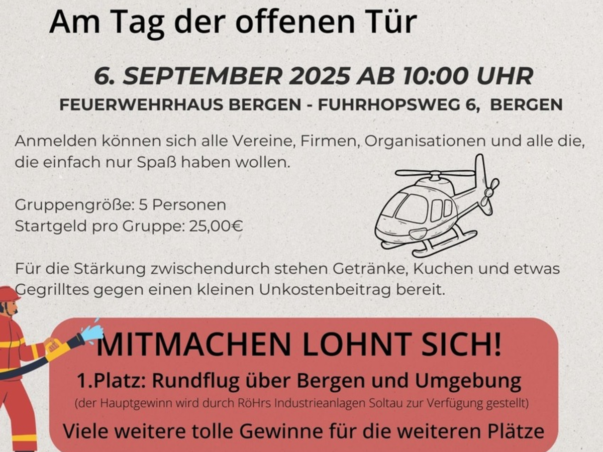 Die Ortsfeuerwehr Bergen freut sich auf zahlreiche Gäste und einen erlebnisreichen Tag.
