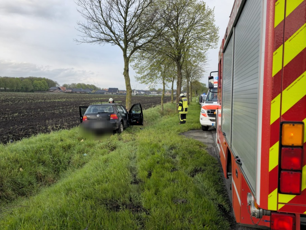 FFW Schiffdorf: 20-jähriger VW-Fahrer bei Kollision mit Baum verletzt
