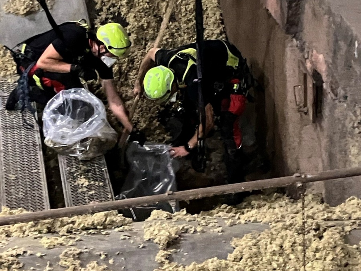 Frankfurt am Main - Ein Deckengewölbe im Hauptschiff des Doms war mit ca. 500L Wasser geflutet, Dadurch kam es zu einem Wassereinritt durch die Decke in den Innenbereich, des Kirchenschiffes. Die Decke ist im Dachraum mit Steinwolle beflockt und diese war entsprechend mit Wasser vollgesogen. Das Gewölbe selbst besteht aus Kalkmörtel und ist mit Kalkputz verputzt. Nach Rücksprache mit einem THW Statiker pumpten die Einsatzkräfte das eingedrungene Wasser mittels einer Tauchpumpe ab, um die Last auf das Deckengewölbe zu reduzieren. Die nasse Steinwolle wurde abgetragen und in Säcke abgefüllt, die dann auf dem Gitterrostboden des Dachraumes abgestellt wurden und im Dach verbleiben können. Aufgrund der Bauart des Gewölbes und der Einsturzgefahr mussten die Arbeiten durch die Höhenrettungsgruppe (HÖRG) durchgeführt werden. Eine Erkundung durch die DLK ergab ein verstopftes Fallrohr, wodurch ein Rückstau entstanden und der Eintritt des Wassers ins Dach begünstigt worden war. Soweit möglich versuchten die Einsatzkräfte die Verstopfung zu entfernen. Nach Rücksprache mit der Dombaumeisterin bezüglich der durchgeführten Maßnahmen und der vermeintlichen Ursache konnten dann die Feuerwehrleute ihre Arbeiten beenden. Es waren zeitweise etwa 40 Einsatzkräfte vor Ort und eine Schadensumme kann noch nicht beziffert werden. Einsatzdauer war von 15:00-18:00 Uhr