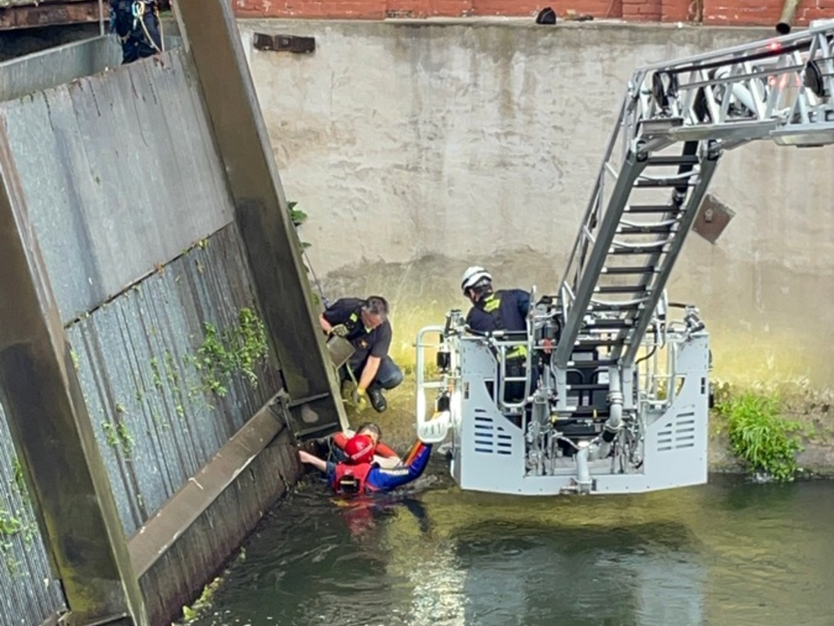 Essen-Steele, Westfalenstraße, 10.07.2024, 07:37 Uhr - Heute Morgen, am 10. Juli um 07.37 Uhr, meldeten Mitarbeiter einer Gerüstbaufirma, die an den Anlagen des Spillenburger Wehrs tätig waren, der Feuerwehr, dass eine hilflose Person in der Ruhr treibt. Sofort wurden zahlreiche Einsatzkräfte, unter anderem Rettungstaucher und die Höhenrettungsgruppe, nach Essen-Steele an die Westfalenstraße zum Spillenburger Wehr entsandt. Als die ersten Einsatzkräfte an der gemeldeten Adresse eintrafen, entdeckten sie eine weibliche Person im Wasser treiben. Diese versuchte, sich am Rechen des Wehrs festzuhalten. Sofort wurde die Wehranlage außer Betrieb genommen und eine mit einer Feuerwehrleine gesicherte Einsatzkraft zu der Frau herabgelassen. Dieser setzte einen Rettungsring ein, um die Frau über der Wasseroberfläche zu halten. Parallel wurde durch die Einsatzleitung die Taucherstaffel in Bereitstellung gebracht. Ein Strömungsretter wurde mit einer Drehleiter, die am Uferbereich aufgebaut wurde, ins Wasser gebracht und schwamm zu der Person. Nach der Sicherung konnte diese mithilfe eines Rettungsbrettes in den Korb der Drehleiter gerettet werden. Anschließend wurde die Patientin an den anwesenden Rettungsdienst übergeben und notärztlich versorgt. Nach der Stabilisierung wurde sie in eine Essener Klinik transportiert.