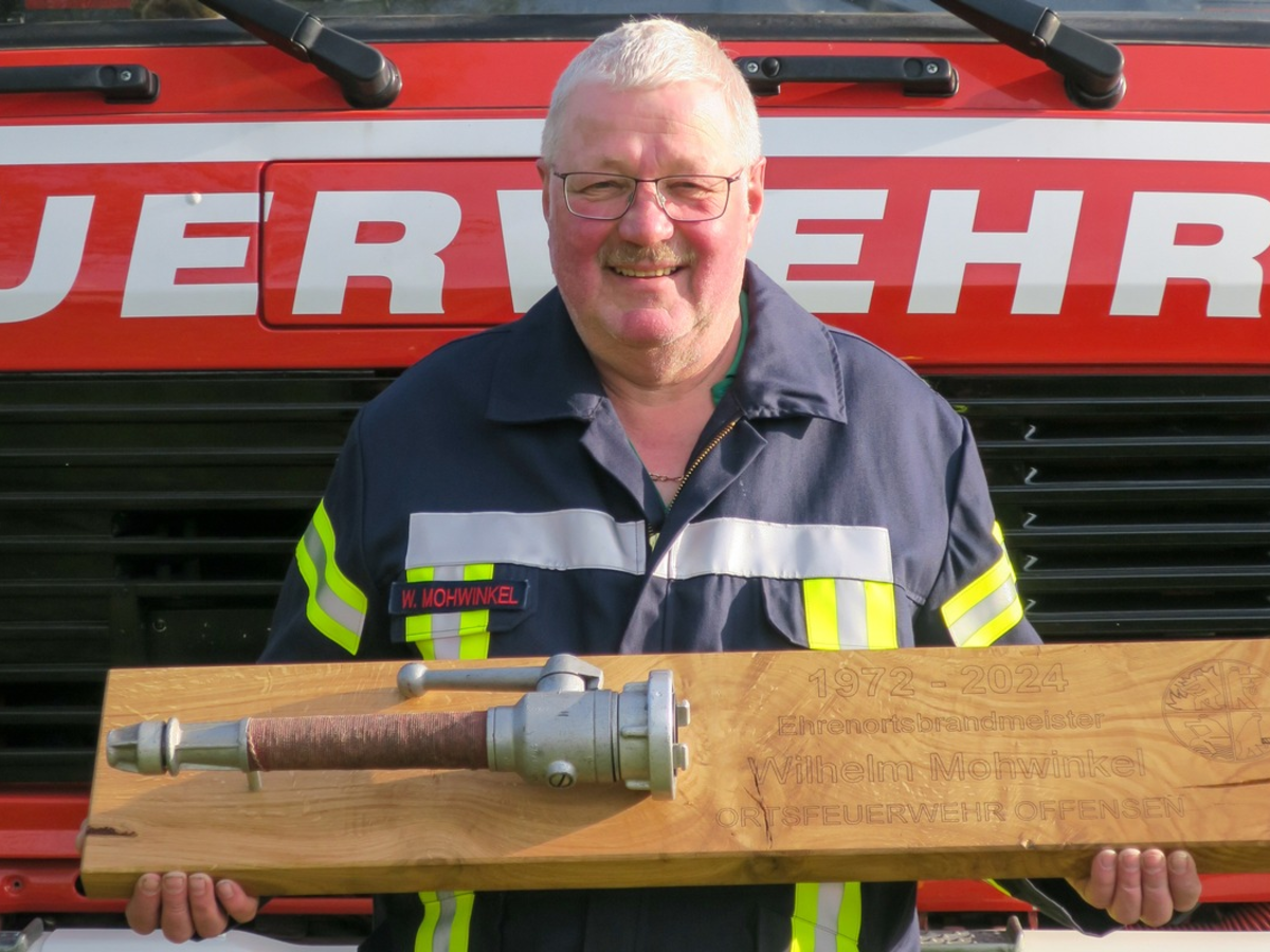 Der scheinbare Alarm war in Wirklichkeit Teil einer Aktion, zu Ehren des Ehrenortsbrandmeisters Wilhelm Mohwinkel, welcher nach 51 Jahren aktiver Dienstzeit in der Ortsfeuerwehr Offensen seinen wohlverdienten Ruhestand antritt. In seiner langen Laufbahn war Wilhelm Mohwinkel nicht nur 10 Jahre lang stellvertretender Ortsbrandmeister, sondern auch 24 Jahre lang in der Funktion des Ortsbrandmeisters tätig. Sein außerordentliches Engagement spiegelte sich auch in seiner überdurchschnittlichen Dienstbeteiligung wider, was sein unermüdliches Wirken und seine Hingabe für die Sicherheit und das Wohlergehen der Gemeinschaft unterstreicht.