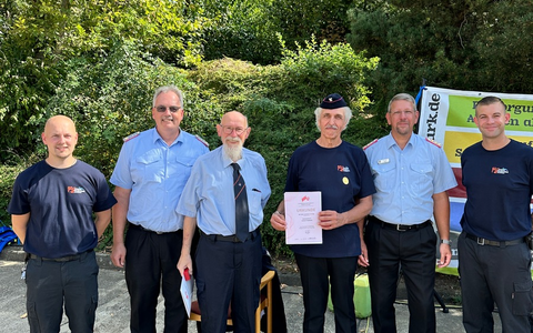 Es folgten die Grußworte von Robert Michaelis (Stadtjugendfeuerwehrwart), Christian Kahl (Stadtbrandmeister) sowie Maik Wermuth (Kreisbrandmeister). In Ihren Reden hoben sie die Wichtigkeit der Jugendarbeit hervor und erläuterten zudem, dass die Jugendfeuerwehr Helmstedt mit ihrer Gründung am 01.09.1964 zu einer der ältesten im Land Niedersachsen zählt. Die älteste Jugendfeuerwehr in Niedersachsen wurde bereits 1948 in Clausthal-Zellerfeld gegründet. Besonders schön war es, dass zwei Gründungsmitglieder bei den Feierlichkeiten anwesend sein konnten und zudem noch eine besondere Ehre erhielten. Andreas Siegemund und Heinz Kornau waren von Beginn an in der Jugendfeuerwehr und erhielten vom Landesfeuerwehrverband Niedersachsen zugleich die Ehrung für 60 (!) Jahre Feuerwehr. Die Kinder erhielten zum "Geburtstag" einen passenden Jugendfeuerwehrrucksack geschenkt.