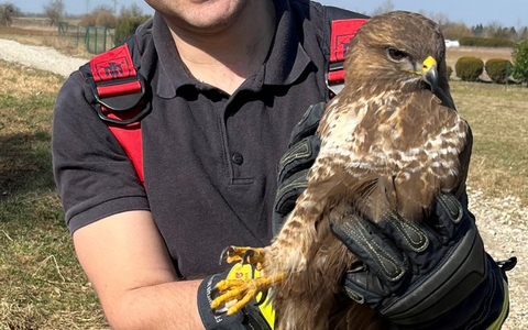 Der Greifvogel hatte sich in etwa 4 Metern Höhe in einem Gitter auf dem Dach eines Mehrfamilienhauses verfangen und konnte sich aus eigener Kraft nicht mehr befreien. Mehrere Raben attackierten den hilflosen Bussard. EinsatzkrĂ€fte der Feuerwehr MĂŒnchen kletterten aus einem Dachfenster auf das Dach und befreiten den Bussard aus seiner misslichen Lage.