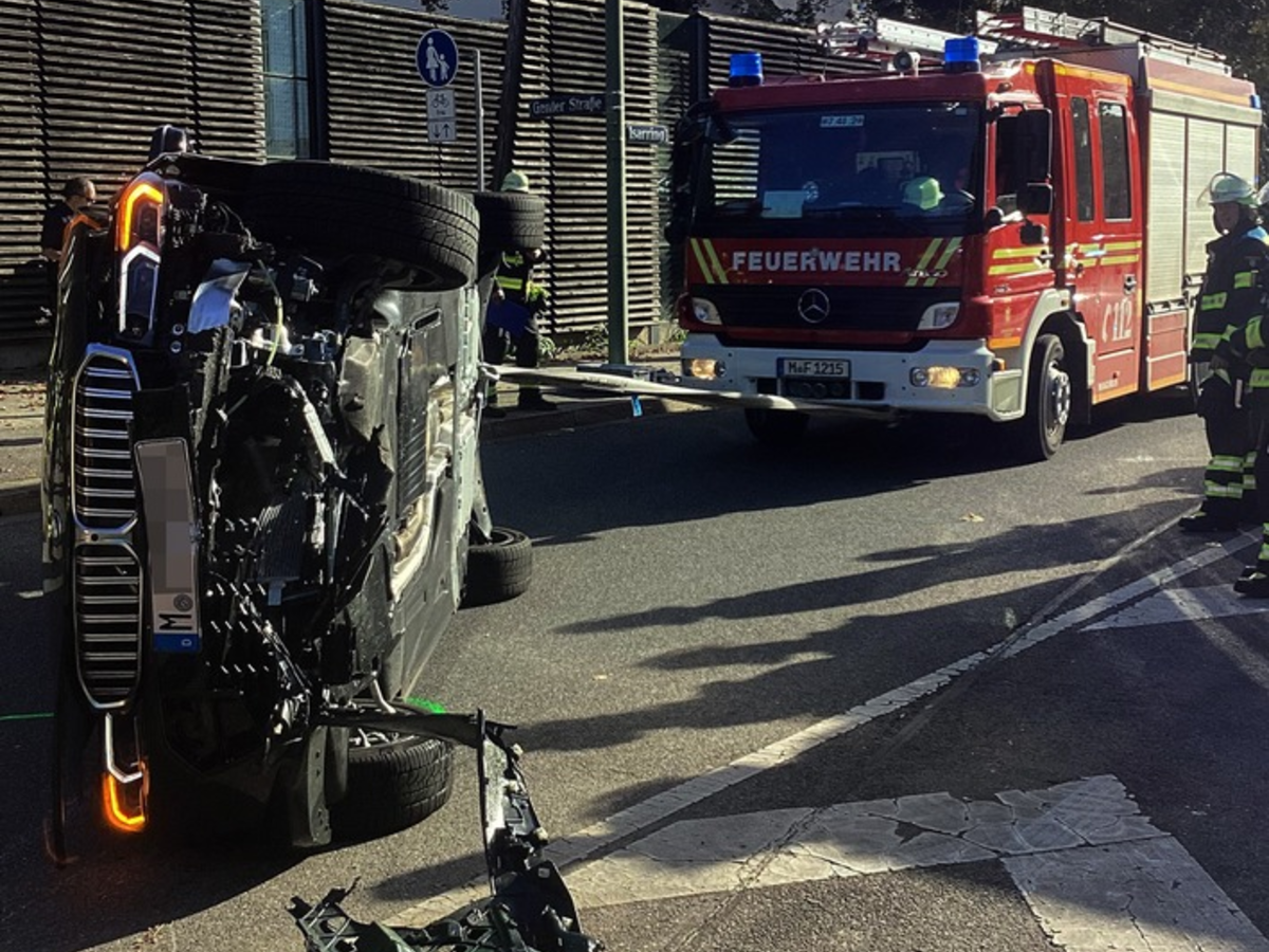 FW-M: Pkw landet auf der Seite (Schwabing)