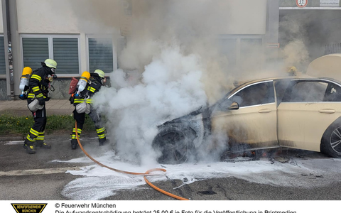 Die auf einem Parkstreifen abgestellte Mercedes Limousine hatte aus unbekannter Ursache angefangen, im Motorraum zu brennen. Ein zufällig vorbeifahrendes Einsatzfahrzeug der Feuerwehr München wurde auf das Feuer aufmerksam und alarmierte weitere Kräfte. Die sofort eingeleiteten Erstmaßnahmen mit einem Feuerlöscher blieben jedoch erfolglos. Als die Einsatzkräfte eines Hilfeleistungslöschfahrzeugs eintrafen, stand das dieselbetriebene Fahrzeug bereits in Vollbrand. Sofort wurden Löschmaßnahmen unter schwerem Atemschutz und dem Schnellangriff eingeleitet. Nach kurzer Zeit waren die Flammen unter Kontrolle. Um auch letzte Glutnester abzulöschen, wurde im Einsatzverlauf auch Löschschaum verwendet. Ein weiterer Trupp kontrollierte zeitgleich ein angrenzendes Gebäude, ob Rauch eingedrungen war.