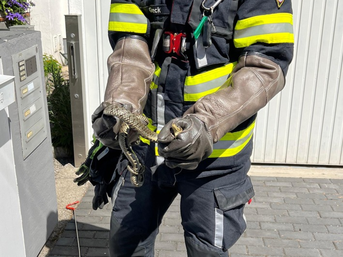 Einsatzkräfte der Feuerwehr haben eine Schlange eingefangen. Anschließend brachten sie das Tier zurück in die Natur.