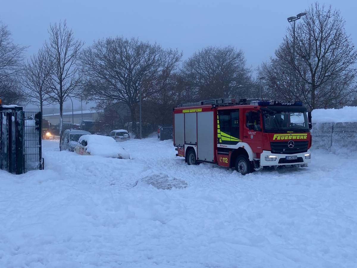 08.12.2023 - 09:31:36 | presseportal.deGegen 12:48 Uhr meldeten Mitarbeiter eines in der Straße Immenhacken sitzenden Unternehmens, dass aufgrund eines technischen Defektes, die interne Schaumlöschanlage ausgelöst hatte und sich der Schaum nun unkontrolliert auf dem Betriebsgelände sowie bereits auf der angrenzenden Straße verteilt. Zudem sollte mindestens ein Fahrer eines Lastkraftwagens in seinem Fahrerhaus sitzen und dort nicht mehr heraus kommen können. Die Freiwillige Feuerwehr Henstedt-Ulzburg wurde daraufhin mit dem Einsatzstichwort "TH K Y" (Technische Hilfeleistung, kleiner als Standard, Menschenleben in Gefahr) alarmiert. Bereits auf der Anfahrt zur Einsatzstelle, lies der Einsatzleiter, stv. Zugführer Timo Schütt, das Einsatzstichwort auf "TH Y" (Technische Hilfeleistung, Menschenleben in Gefahr) erhöhen und alarmierte somit die komplette Gemeindefeuerwehr Henstedt-Ulzburg, um ausreichend Einsatzkräfte an der Einsatzstelle zu gewährleisten.