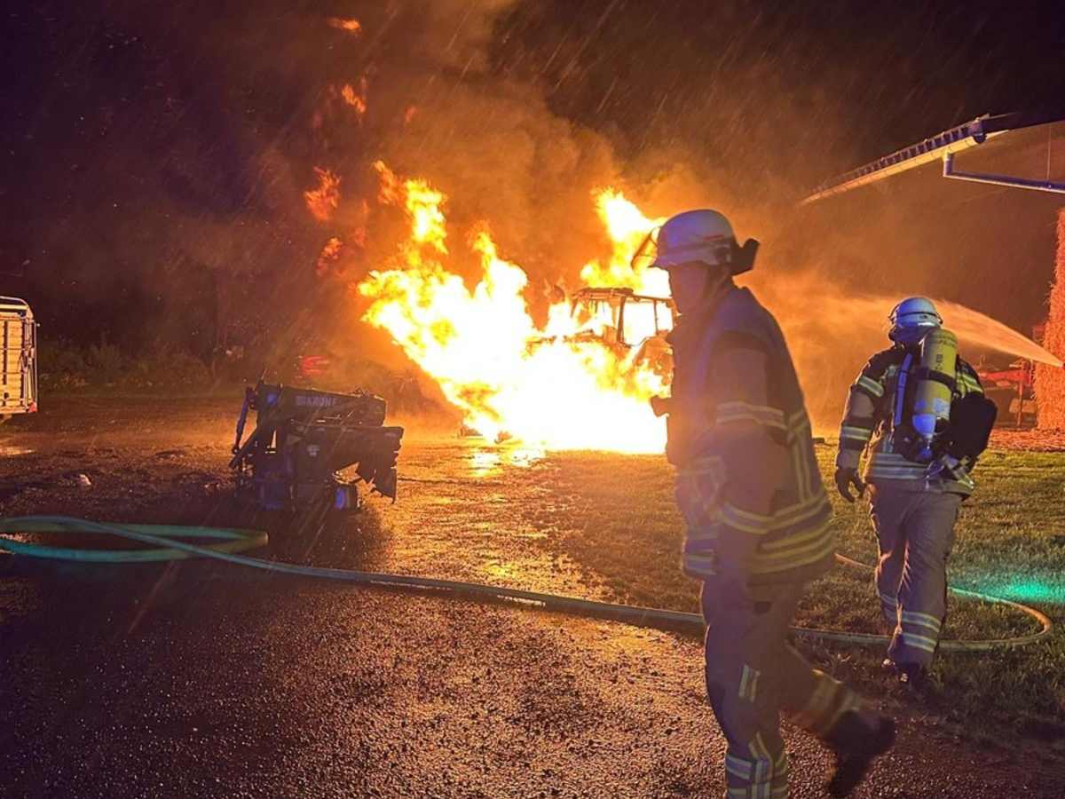 GĂ€ufelden Tailfingen - Die Feuerwehr GĂ€ufelden wurde Montagnacht den 15.07.2024 gegen 22:30Uhr zu einem brennenden Traktor alarmiert. Laut Meldebild soll ein Traktor in einer Scheune in Vollbrand stehen. Die Lage beim Eintreffen bestĂ€tigte sich groĂteils. Der Traktor stand bereits in Vollbrand und die Flammen hatten bereits das Scheunendach erreicht. In der Scheune befanden sich weitere GerĂ€tschaften und Stroh. Sofort begonnen zwei Trupps unter Atemschutz mit der BrandbekĂ€mpfung und der Riegelstellung zum direkt angrenzenden landwirtschaftlichen GebĂ€ude, dadurch konnte der FlammenĂŒberschlag auf die Scheune verhindert werden. Nach Eintreffen des zweiten Löschfahrzeuges wurde ein weiterer Trupp zur BrandbekĂ€mpfung eingesetzt. Aufgrund der vorgefunden Lage entschied sich der Einsatzleiter umgehend dafĂŒr, weitere Löschfahrzeuge und AtemschutzgerĂ€tetrger nachzufordern. Da sich mehrere Personen in unmittelbarer NĂ€he des Brandobjekts befanden, wurden diese parallel vom Rettungsdienst gesichtet. Durch die abgelegene Lage des Brandobjekts, wurde durch ein Fahrzeug eine Wasserentnahmestelle in einer SeitenstraĂe nahe am Ortsrand von Tailfingen eingerichtet und somit ein Pendelverkehr fĂŒr die nachrĂŒckenden Löschfahrzeuge ermöglicht. Zur Kontrolle des Daches, der PV Anlage sowie des Traktors von oben wurde die Drehleiter aus Herrenberg eingesetzt. Alle eingesetzten AtemschutzgerĂ€tetrĂ€ger durchliefen nach dem Einsatz unser Hygienekonzept, um die von Schadstoffen kontaminierten Einsatzklamotten abzulegen und sich umzuziehen, um ein verschleppen schĂ€dlicher Stoffe zu vermeiden.