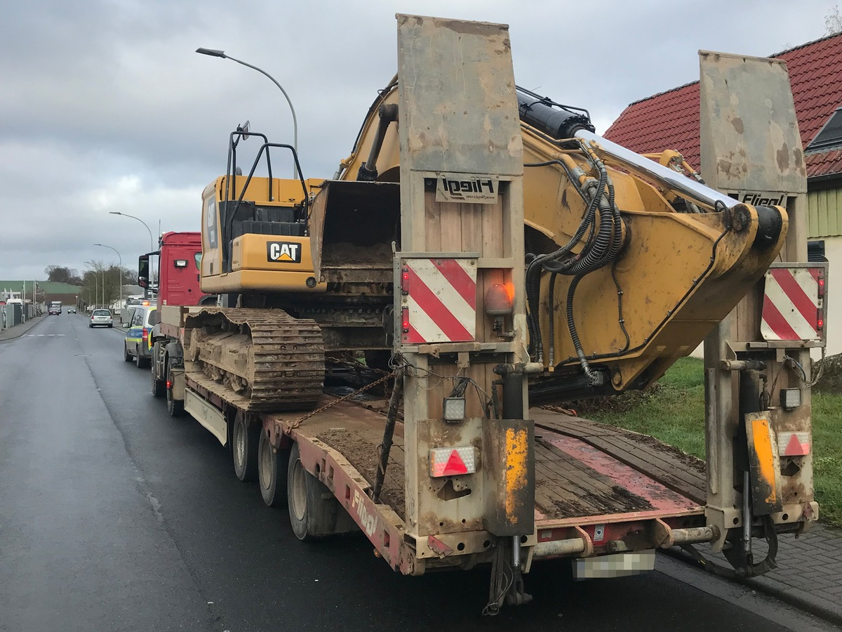 Bei Kontrollen im nördlichen Wetteraukreis stellten Beamte des Regionalen Verkehrsdienstes Wetterau mehrere Verstöße fest. Am 09.12.2025 (Dienstag) nahmen die Verkehrsexperten in Münzenberg einen ausländischen Sattelzug unter die Lupe, auf dessen Anhänger sich ein zwölf Tonnen Linienbus befand. Die Ordnungshüter stellten fest, dass die zulässige Gesamthöhe überschritten wurde. Da der Fahrer keine gültige Ausnahmegenehmigung für den Transport vorlegen und auch keine weitere Höhenregulierung vornehmen konnte, untersagten die Polizisten die Weiterfahrt bis zur Einholung der entsprechenden Genehmigung. Wegen des Verstoßes musste der Fahrer zudem eine Sicherheitsleistung in vierstelliger Höhe entrichten. Zwei Tage später unterzogen die Verkehrsspezialisten in Butzbach den Lkw eines Containerdienstes einer Kontrolle. Neben mangelhafter Ladungssicherung erkannten die Beamten, dass der Fahrer des Gespanns nicht im Besitz einer gültigen Fahrerlaubnis war. Die erforderliche Führerscheinklasse war bereits im Jahre 2020 abgelaufen. Zudem registrierten die Polizisten mehrere Verstöße gegen die Sozialvorschriften. Beispielsweise wurde die Auslesefrist des Massenspeichers um 686 Tage überschritten. Gegen den Fahrer fertigten die Ordnungshüter eine Anzeige wegen des Fahrens ohne Fahrerlaubnis, gegen den Halter unter anderem wegen des Zulassens des Fahrens ohne Fahrerlaubnis. Ebenfalls am 11.12.2025 und ebenfalls in Butzbach überprüfte der Verkehrsdienst Wetterau einen Schwertransport. Beladen war dieser mit einem 22 Tonnen Kettenbagger von fast drei Metern Breite. Auch hier stellte die Streife eine mangelhafte Ladungssicherung fest und erkannte, dass die vorgelegte Ausnahmegenehmigung für diesen Transport bereits im Jahr 2020 abgelaufen war. Eine Folgegenehmigung wurde bis dato nicht beantragt. Die Weiterfahrt untersagten die Beamten daher bis zur Einholung der erforderlichen Ausnahmegenehmigung. Auf Fahrer und Halter kommen nun Ordnungswidrigkeitsverfahren zu.